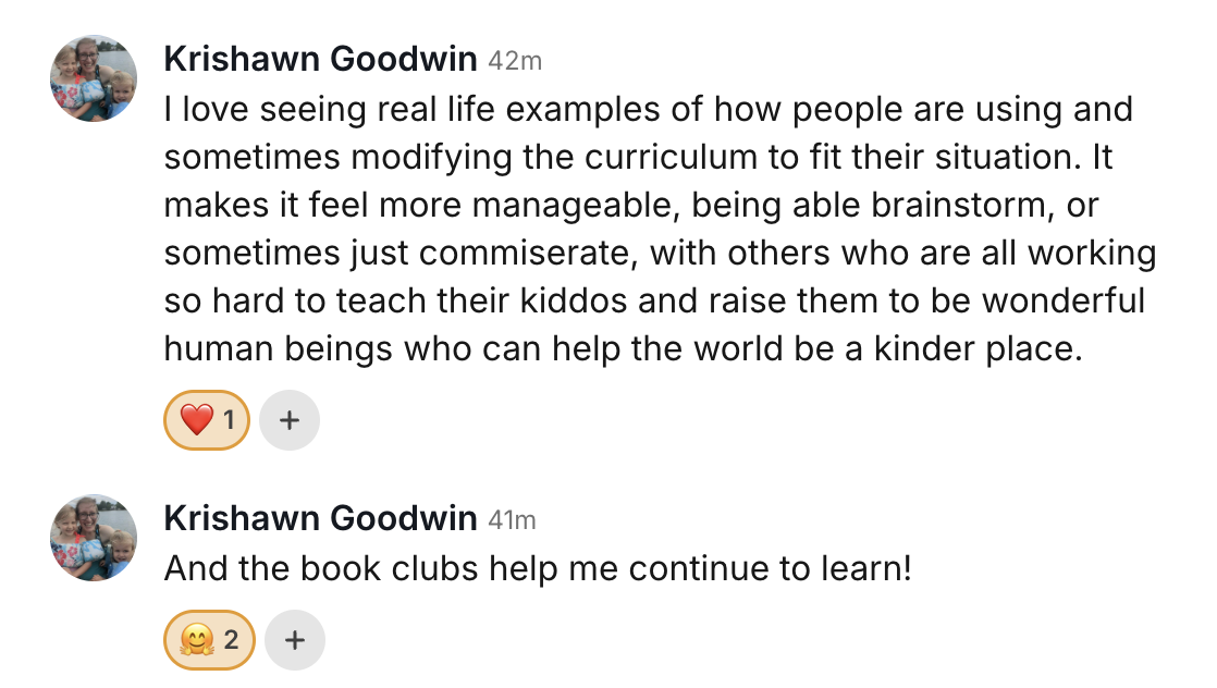 And instead of guessing, you get answers from people who understand what you’re experiencing. Parents who are using the same curriculum, learning Montessori, and homeschooling alongside you.